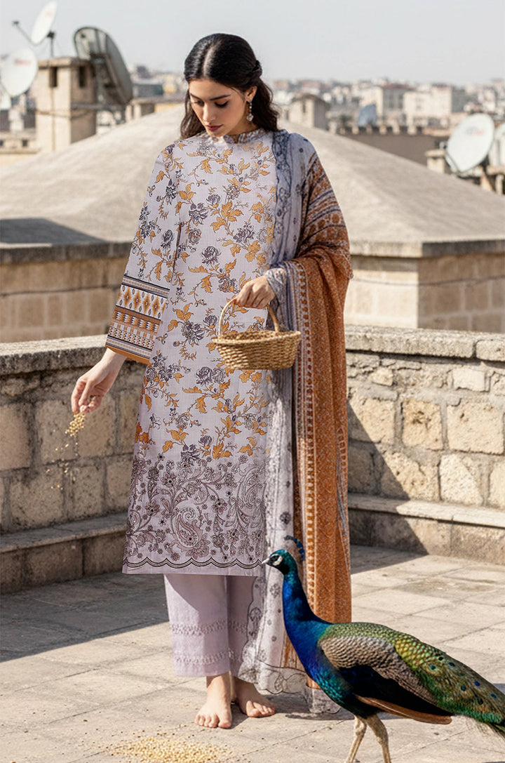 DUPATTA: 4SIDE ATTACHED LACE EMB & PRINTTED KHADAR DUPATA
