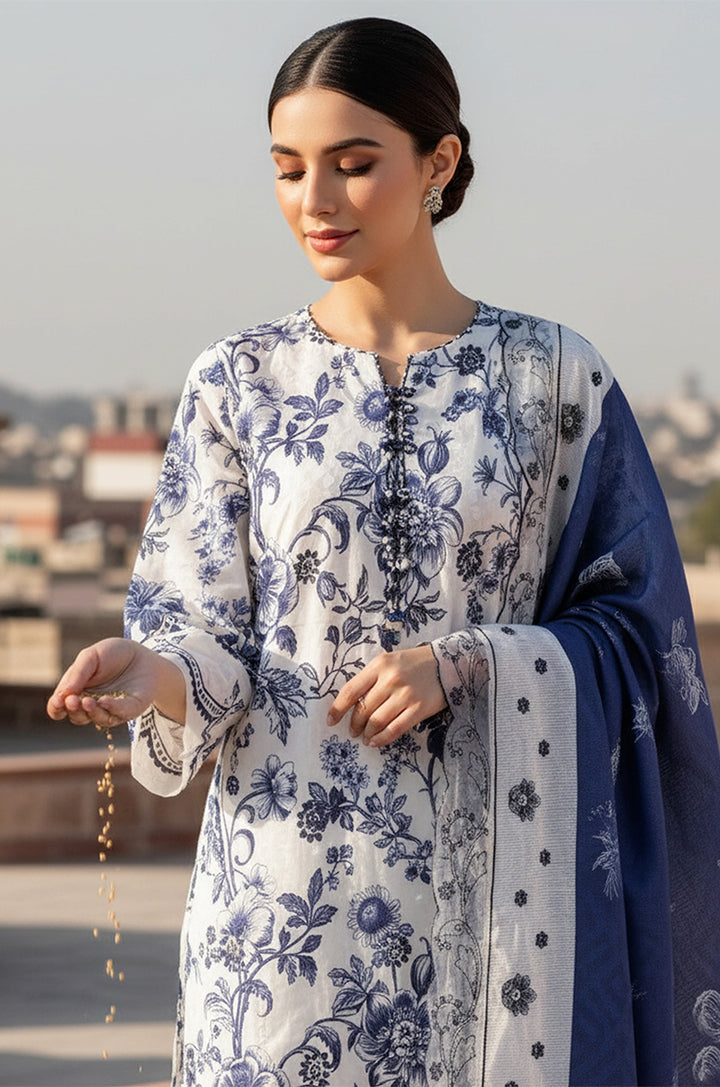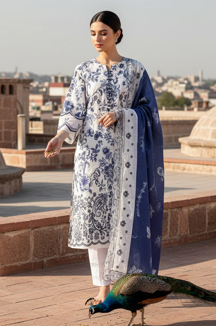 DUPATTA: 4SIDE ATTACHED LACE EMB & PRINTTED KHADAR DUPATA