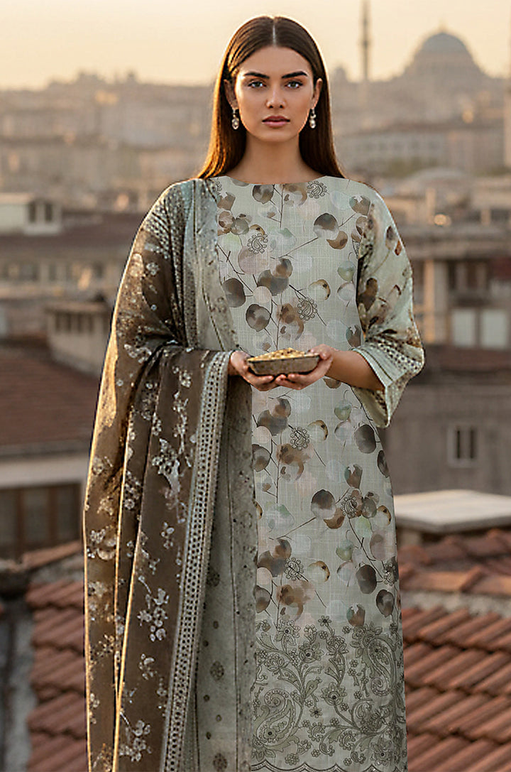 DUPATTA: 4SIDE ATTACHED LACE EMB & PRINTTED KHADAR DUPATA
