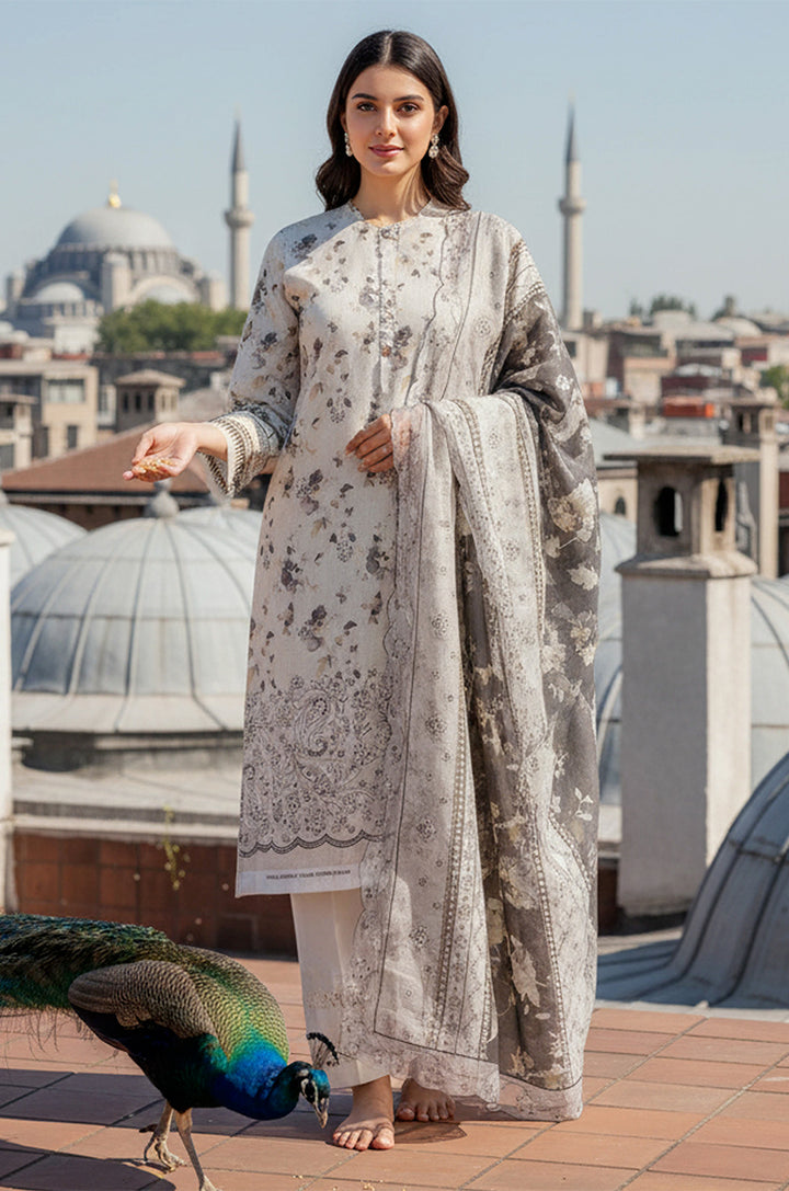 DUPATTA: 4SIDE ATTACHED LACE EMB & PRINTTED KHADAR DUPATA