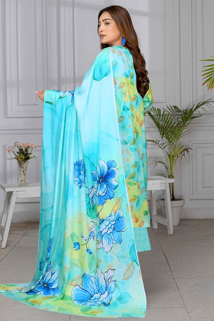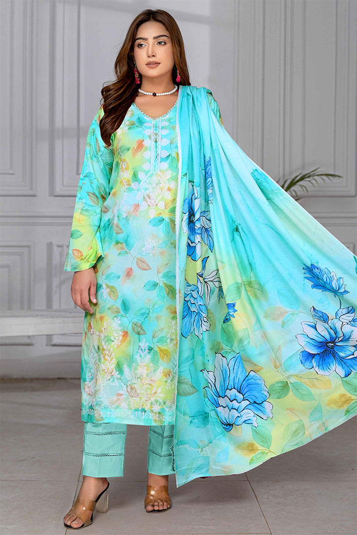 PEACH PRINT FRONT SHIFLI EMB PRINT DUPPATTA PLAN DYED TROUSER