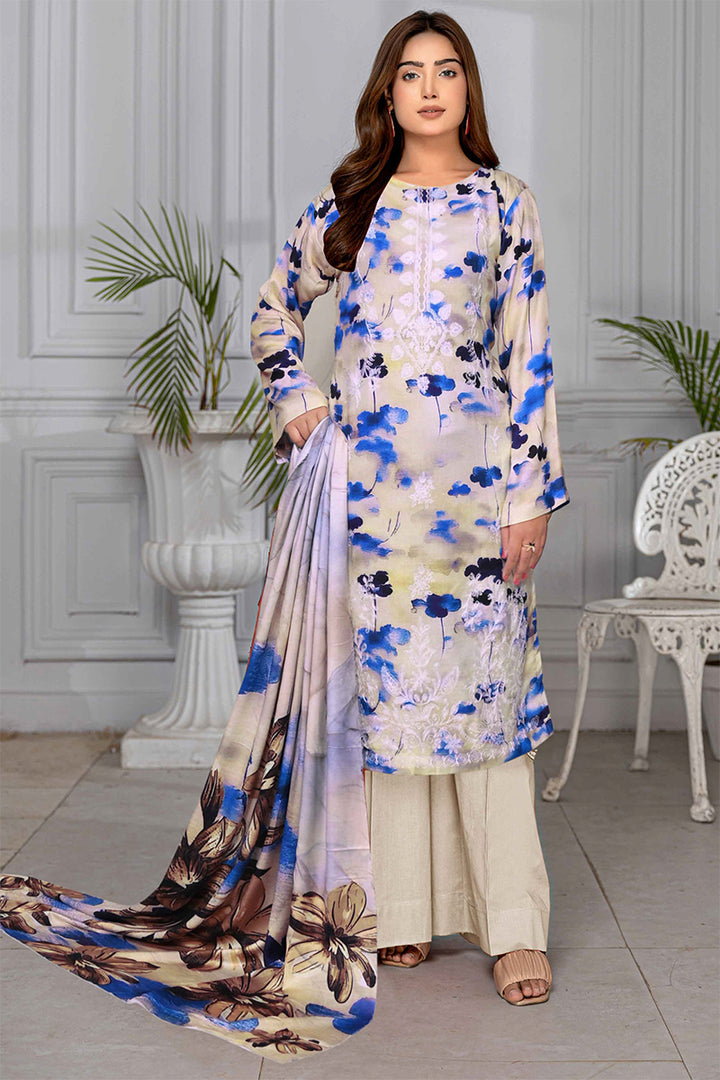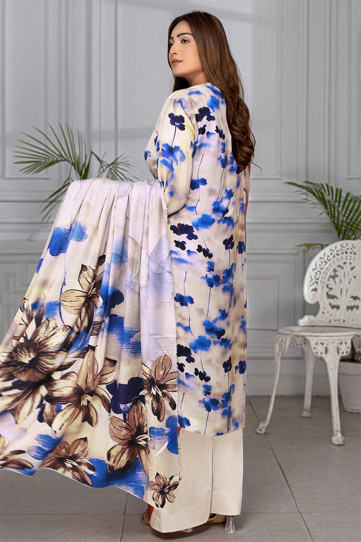 PEACH PRINT FRONT SHIFLI EMB PRINT DUPPATTA PLAN DYED TROUSER