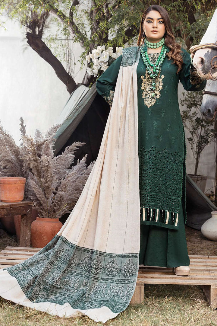 SHIRT YUDIYA KARANDI FRONT BACK AND SLEEVES EMBROIDERY BROSHA PALLU SHAWL AND WITH DIED PLAIN TROUSER