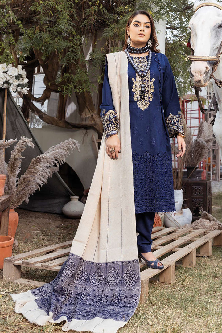 SHIRT YUDIYA KARANDI FRONT BACK AND SLEEVES EMBROIDERY BROSHA PALLU SHAWL AND WITH DIED PLAIN TROUSER