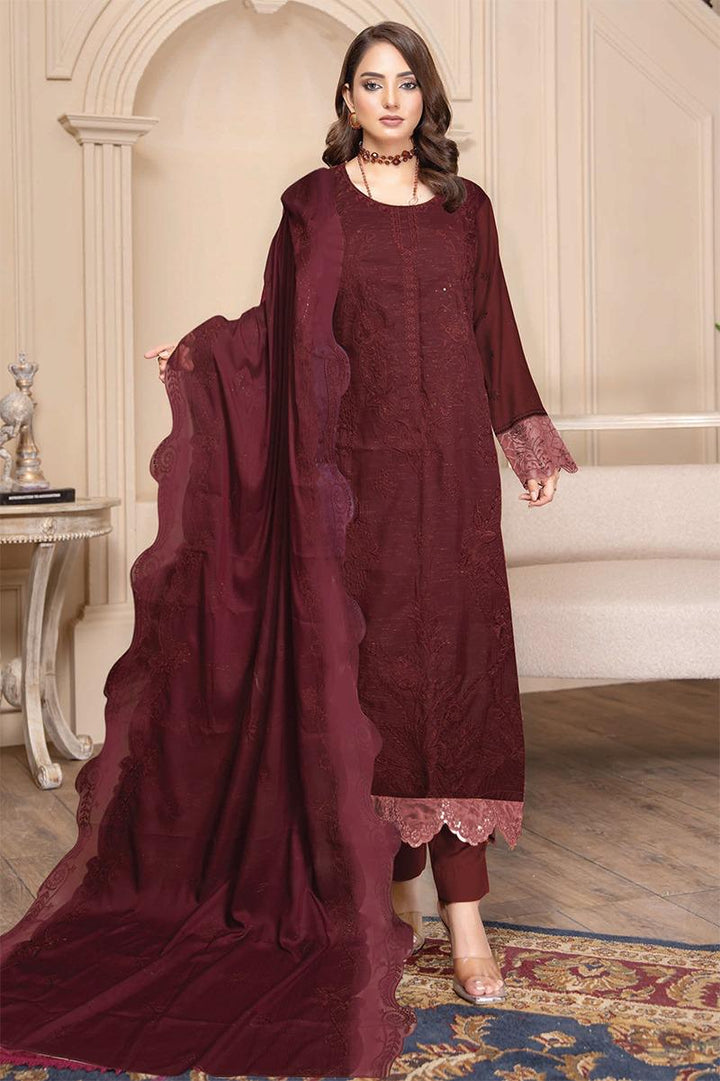 DUPATTA; 4 SIDE ATTACHED PATTI WITH EMB CHAMKI VISCOSE