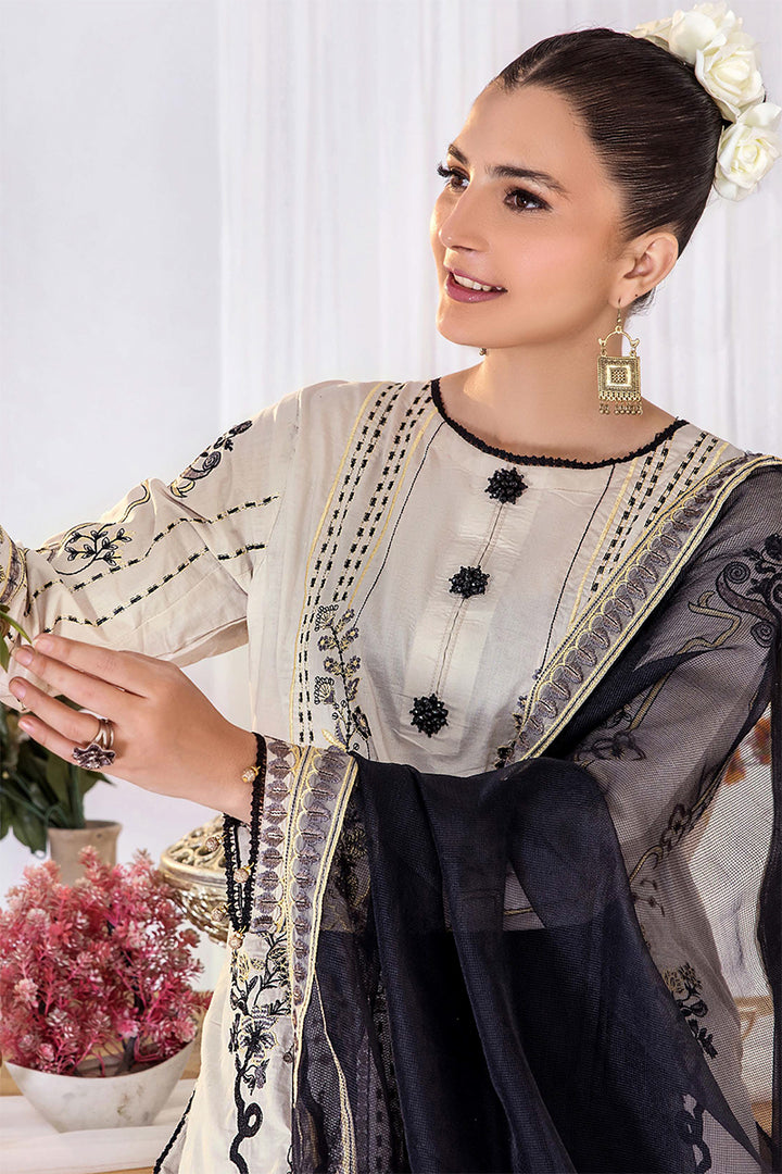 LAWN SHIRT FRONT BACK AMD SLEEVES EMBROIDERY DAMAN EMBROIDERED TISSUE PATTI CONTRAST NET DUPATTA WITH 4 SIDE TISSUE EMB PATTI WITH COMFORTABLE PLAIN TROUSER